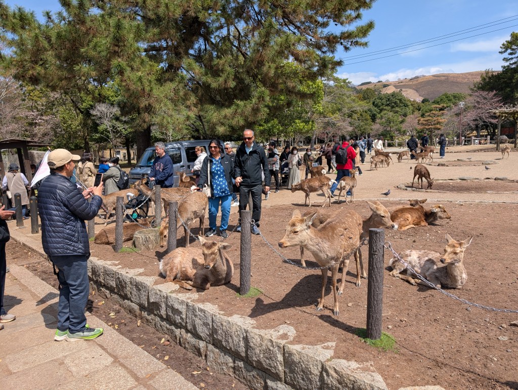 Õnneks aitasid eksimuse kiiresti unustada kuulsad Nara hirved. Neid on sealses pargis ja selle ümbruses lugematu hulk. Sealsed hirved on pühad loomad, keda peetakse Shinto jumala saadikuteks. Loomad olid väga sõbralikud – inimesi nad ei karda. Hoopis vastupidi – nad tulevad turistide juurde, lootes saada küpsist, mida on võimalik osta ja loomadele pakkuda. Hirved on õppinud, et kummardamine tähendab sööki ja siis nad aeg-ajalt kummardavad (või noogutavad) suvalistele inimestele, lootuses süüa saada. Päris tihti see taktika töötab. Hirvi nägime me Naras sisuliselt kogu aeg, olenemata kuhu me läksime.