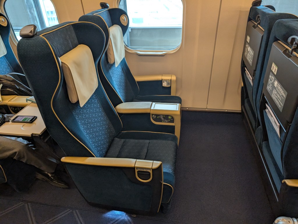 See oli tõesti uhke. Istmed olid palju suuremad ja jalaruumi oli rohkem kui küllalt. Samuti sai istme seljatoe ja jalatoe nurka muuta, peaaegu nagu Apollo Kino staaritoolidel. Sõit oli mõnus ja sujuv, kuigi vahepeal kihutasime 250km/h. Vagunis oli ka väga vaikne – nii rongi enda heli kui ka reisijate helide suhtes. Viimase kohta oli mitmeid hoiatusi ja juhiseid. Näiteks paluti telefoniga rääkimiseks minna vagunist välja ning isegi paluti jälgida, et sülearvutiga liiga valjult ei trükiks. Aeg-ajalt võis näha politseid rongis jalutamas. See pidavat olema tavapärane, et tõsta turvalisust ja ennetada probleeme. Jõudsime mugavalt ja turvaliselt Kanazawasse.
