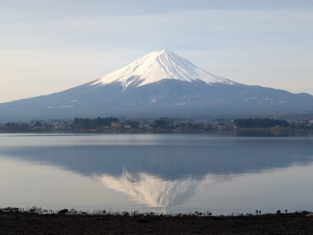 Juba teel nautisime takso aknast kenasid vaateid Fuji mäele. Kohale jõudes oli pilt veelgi parem. Mäge oli näha oma täies hiilguses, hommikupäike paitas mäe tippu ja kirsiks tordil oli üsna sile järvepind, milles oli mäe peegeldust näha. Nägime ka teisi inimesi, aga neid oli piisavalt vähe ja keegi kedagi ei seganud. Ilm oli karge – umbes 1 kraad. Ma olin ilmaennustuse põhjal selleks valmistunud ja külm ei hakanud.