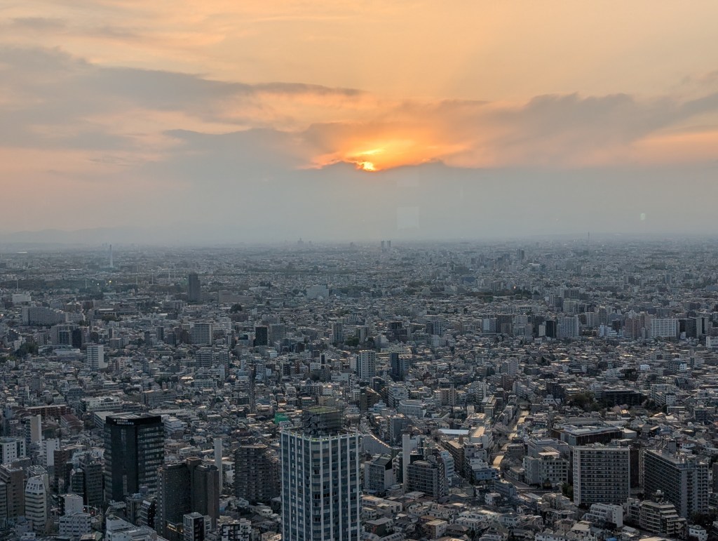 Juhuslikult olime torni jõudnud veidi enne päikeseloojangut ehk saime nautida Tokyo linna panoraami valges, näha pilvedesse loojuvat päikest ja mõne aja pärast ka linna pimeduses ja tuledes. Paraku läbi klaasi pildistamine oli kohati keeruline, sest peegeldus kippus pildile jääma. Rahvast oli mõõdukalt – mõnes kohas pidi veidi ootama, et head pilti saada, aga midagi hullu polnud.