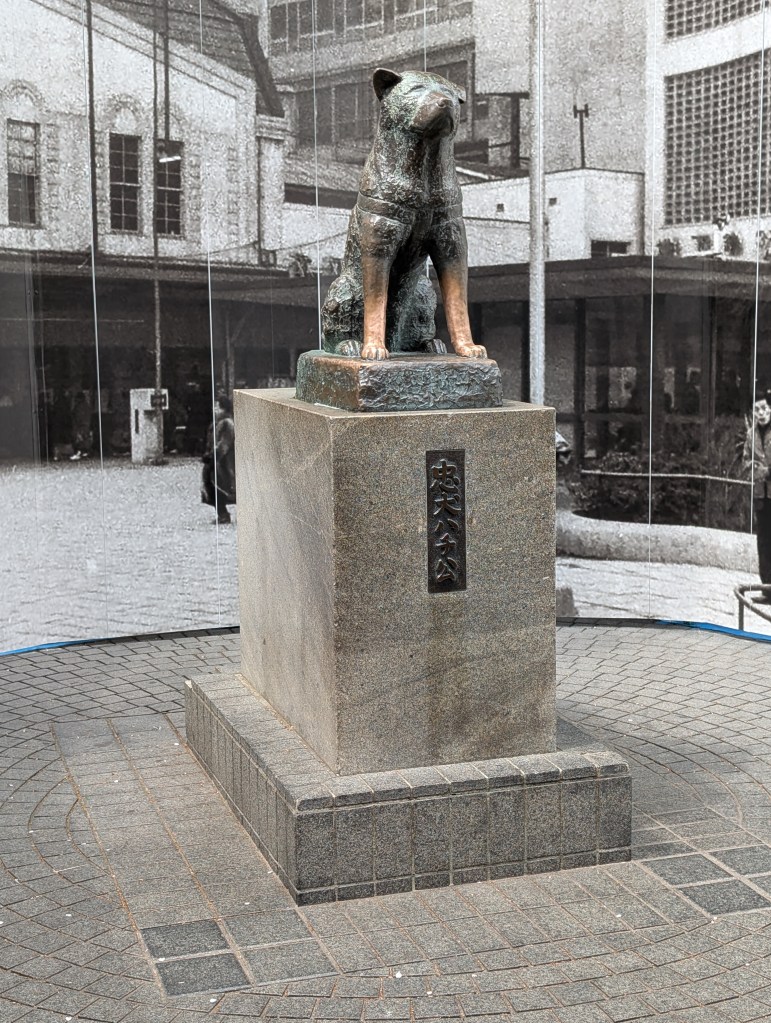 Järgmiseks käisime vaatamas Hachiko kuju. Hachiko oli 1923. aastal sündinud Akita tõugu koer, kes läks igal õhtul oma omanikule Shibuya jaama vastu. 1925. aastal suri omanik töö juures, aga koer käis siiski järgmised 10 aastat jaamas omanikku ootamas. Esimene kuju püstitati juba 1934. aastal, Hachiko ise oli ka avamisel kohal. See võeti II ms ajal metalli saamiseks maha, kuid 1948. aastal loodi uus kuju. Nagu oleme juba korduvalt näinud, oli koju ees pikk pildistamise järjekord. Kuju on avalikus kohas ja selle vaatamine midagi ei maksta, aga järjekord oli spontaanselt tekkinud. Sellised iseseisvalt tekkinud pildistamise järjekorrad meile ei meeldi, sest järjekorras tulnud inimesed arvavad, et nüüd on neil õigus lõputult pilte teha ja vaadet blokeerida. Meie tahtsime vaid ühte kiirest pilti ilma turistideta ning see oli päris keeruline. Õnneks sain ühe viisaka pildi ilma järjekorras seismata.