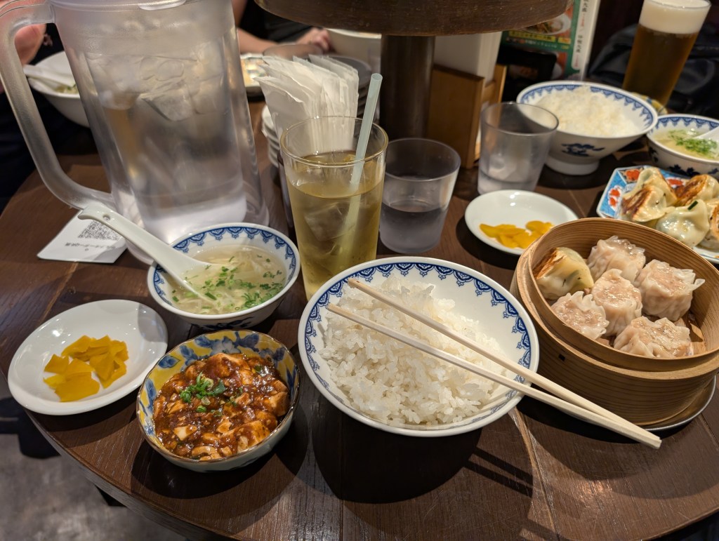 Pidime 20-30 minutit ootama, et süüa saada. Tellimine oli juba tuttava süsteemiga – paberil toodi QR kood, seda skanneerides avanes veebileht, kus sai menüüd näha ja tellida. Minu algne mõte oli mitte võtta setti, sest alati tuuakse nii palju kraami, et osa jääb alati järgi (nt miso supp). Siiski on setti tellimine kõige lihtsam – saab pearoa, riisi ja lisandeid. Seega võtsin mingi gyoza/pelmeeni seti, aga jätsin osad lisandid (näiteks väga vürtsika tofu) söömata. Muidu oli toit väga hea.